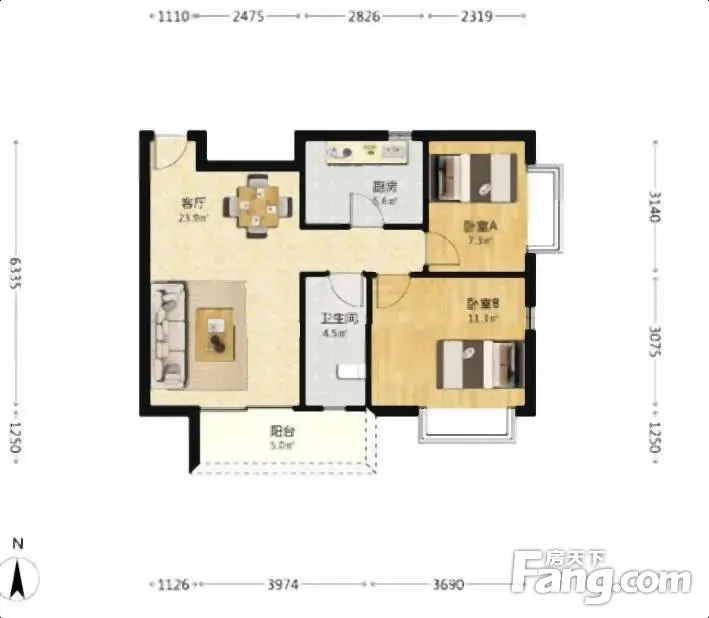 户型齐全,主打明厨,客厅朝南,双卧朝南,主卧朝南二居