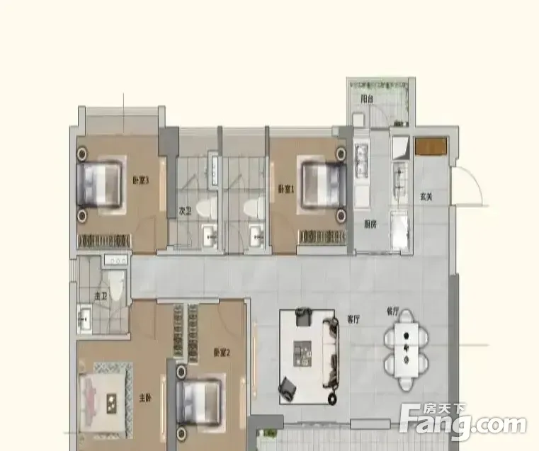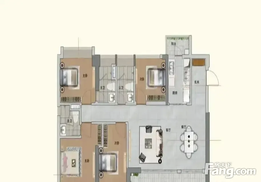 户型齐全,主打高附赠空间,U型厨房,大面宽阳台五居