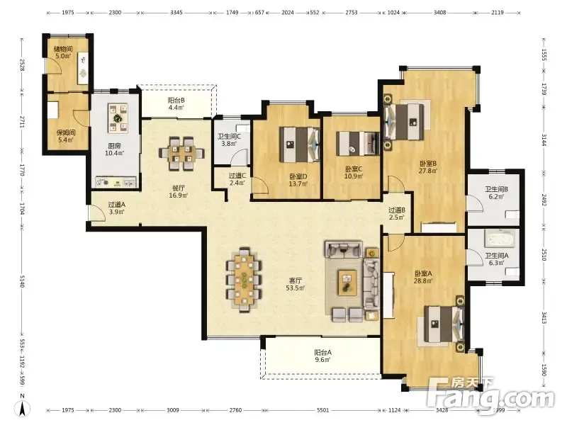 房屋拥有相对宽松的尺寸,布局通透,动静分离,设计豪华