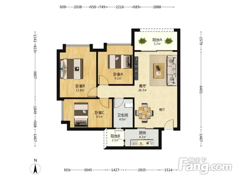 3室2厅1卫