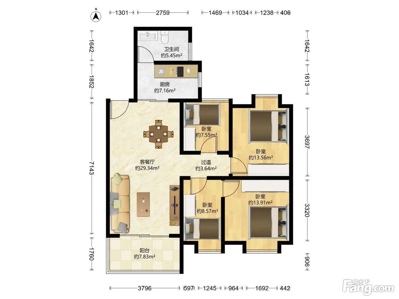 户型齐全,主打明卫,客厅朝南,双卧朝南三居