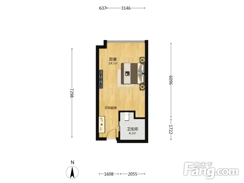 星汇国际大厦 1室1厅 44.59平
