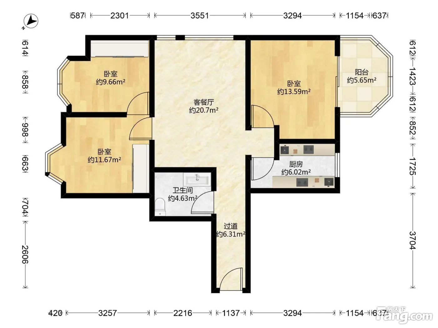户型齐全,主打户型方正,明卫,明厨,客厅朝南三居