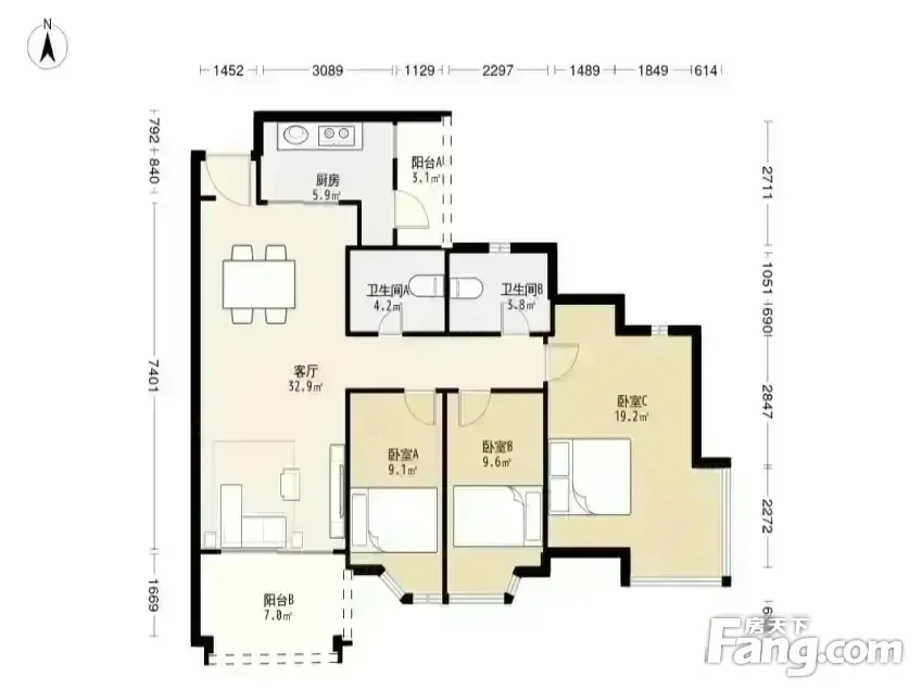 户型齐全,主打明卫,双阳台三居
