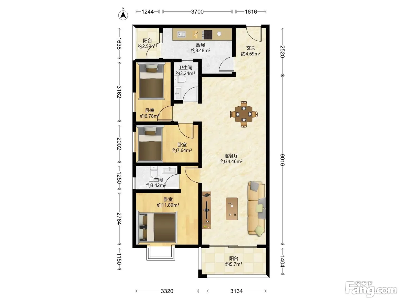 户型齐全,主打明卫,明厨,双阳台,主卧朝南三居