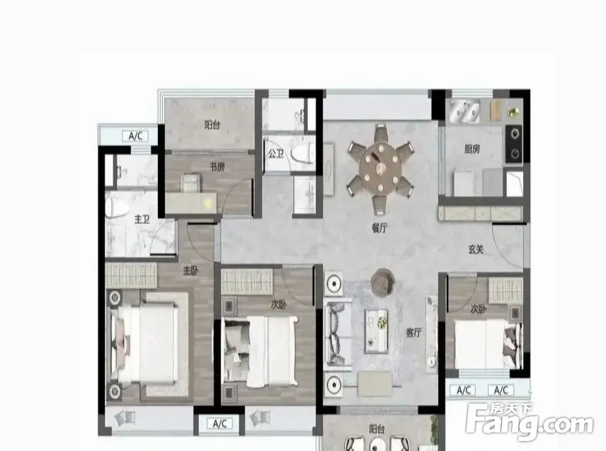 户型齐全,主打采光充足,客厅朝南,主卧套间,大面宽阳台四居