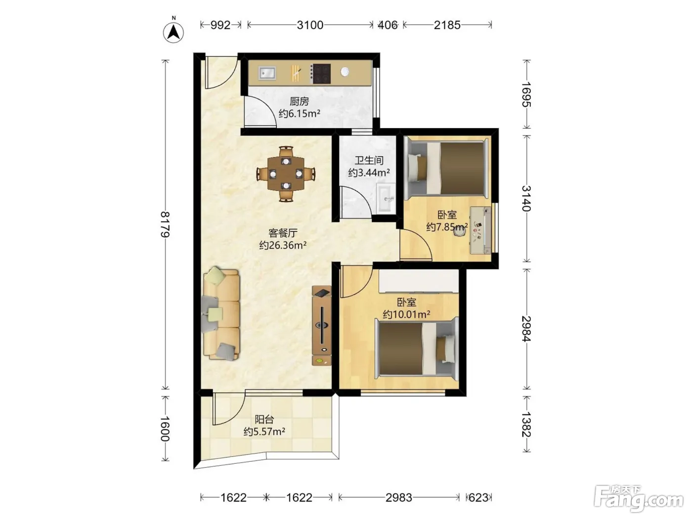 户型齐全,主打户型方正,明卫,客厅朝南,双阳台二居