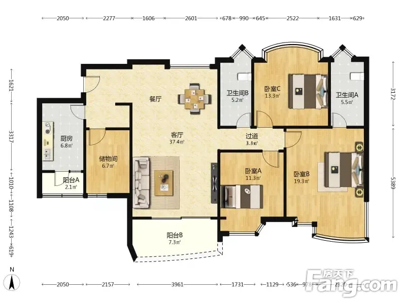 东海花园 4室2厅 140.61平