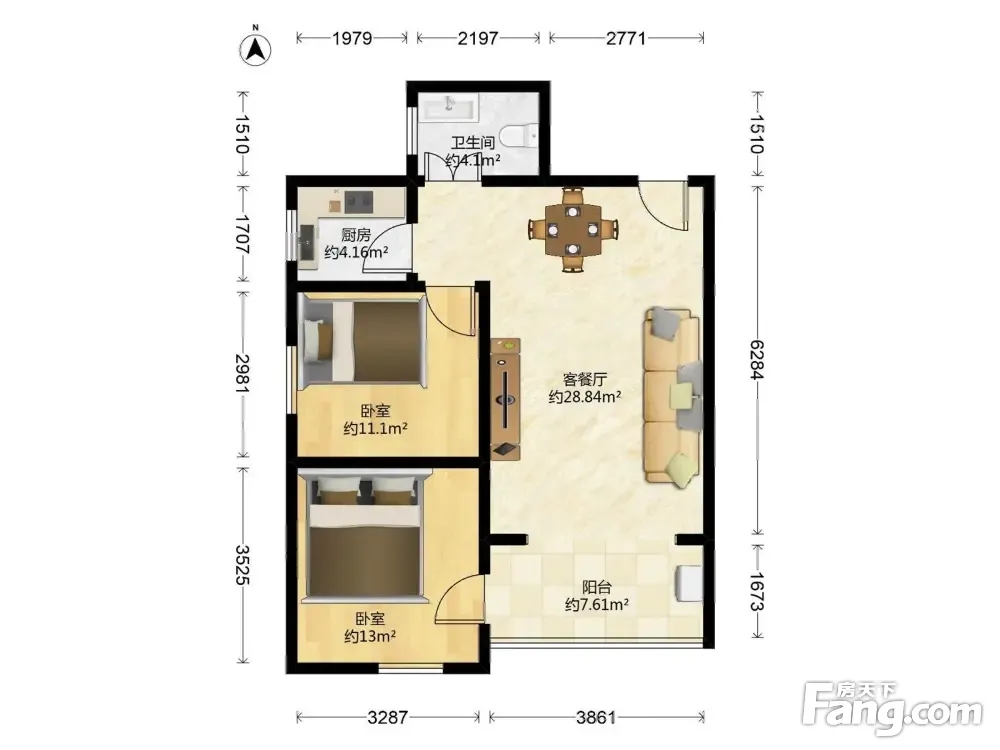 金宇花园 2 房 68.82 方 全南户型 厅带阳台