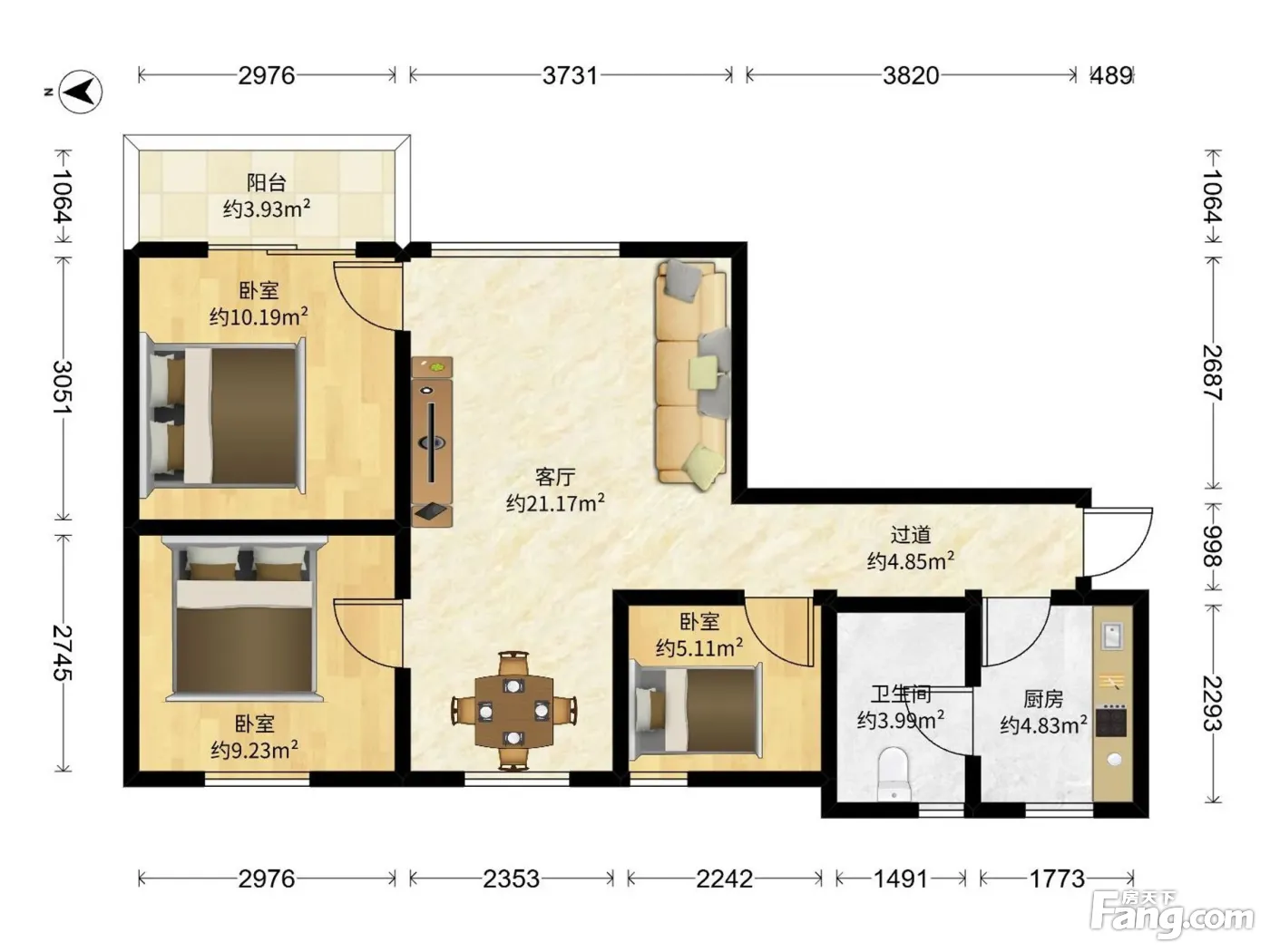 文德广场 3 房 75.67 方