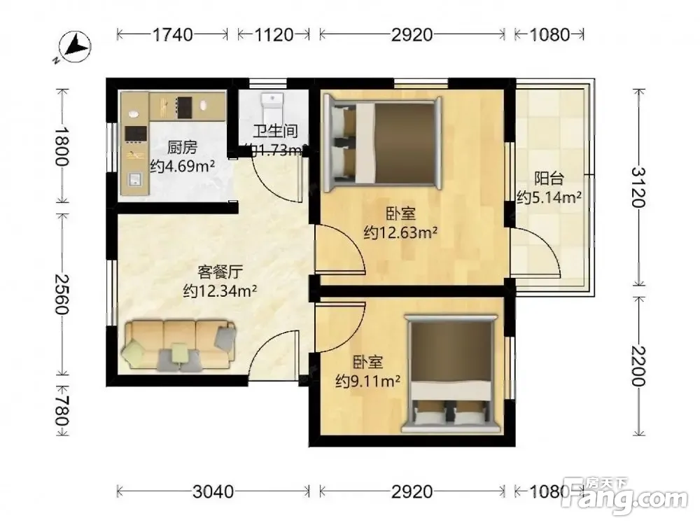 户型齐全,主打户型方正,明卫,明厨,客厅朝南,全明格局二居