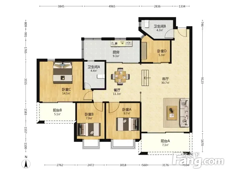海伦堡御院 4室2厅新挂盘 四开间朝南 采光好 不对路 户型