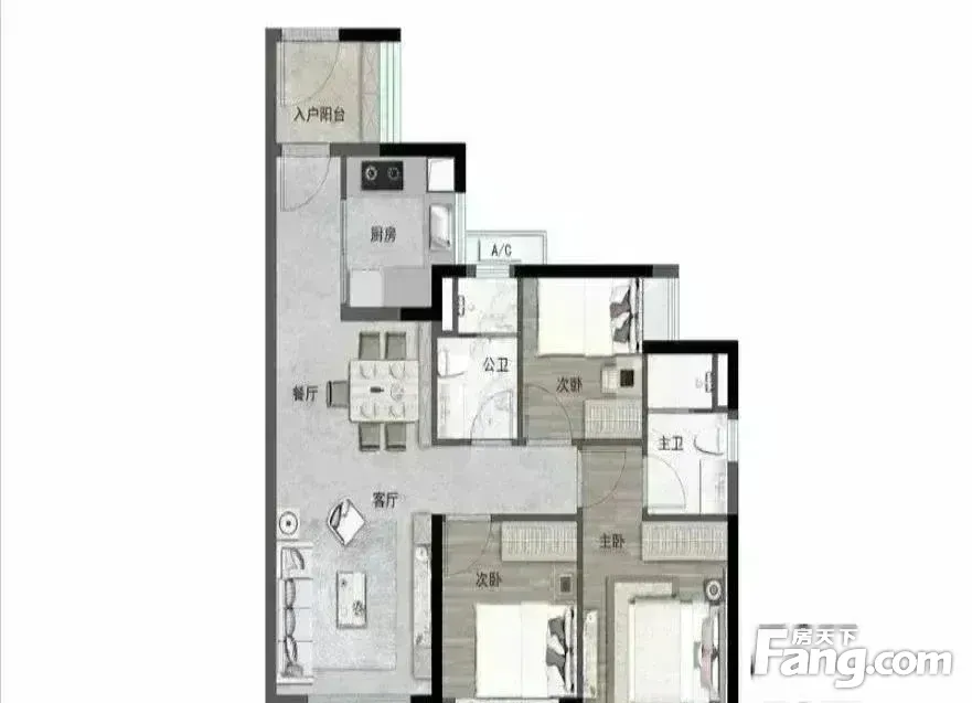 户型齐全,主打南北通透,全明格局,采光充足三居