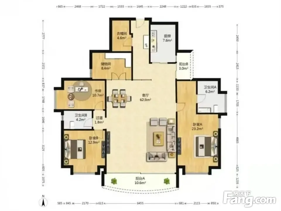 房屋户型方正,景观布局合理,设计实用,空间舒适,格局优越,采光通风良好