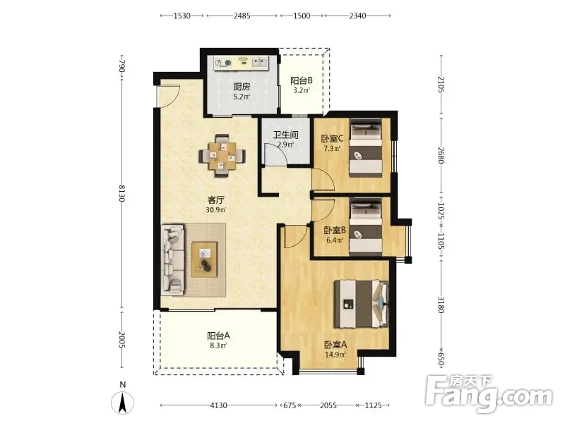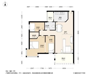 福虹阳光美地 3室2厅 95.37平