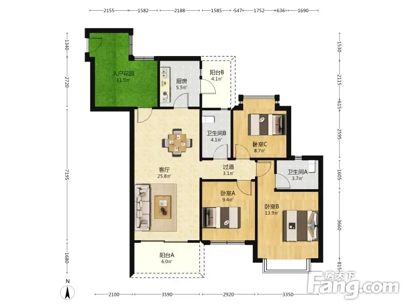 保利城 3室1厅 106.43平