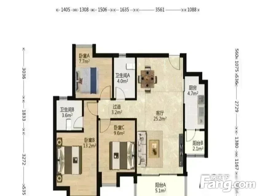 3室1厅2卫