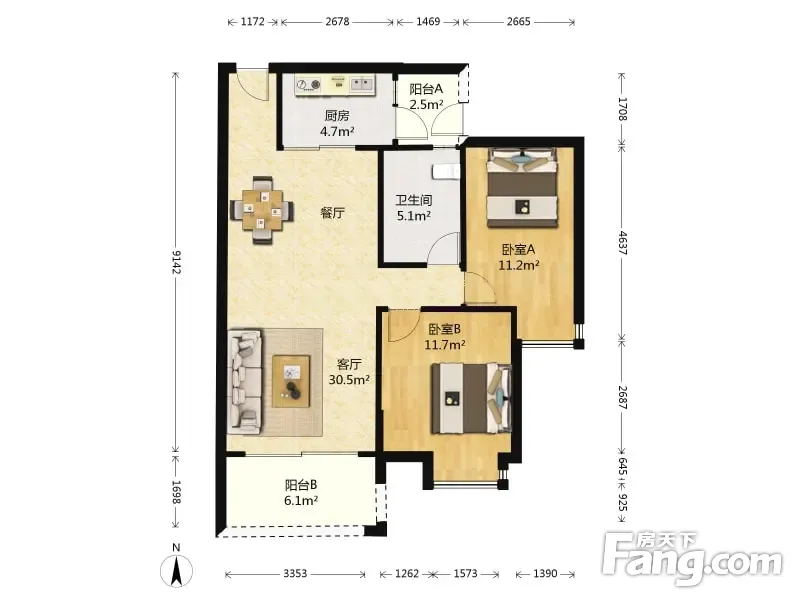 骏辉雅苑 2室1厅 89.57平