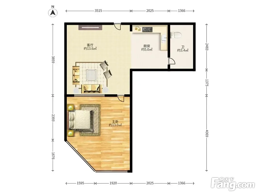 户型齐全,主打户型方正,明厨,客厅朝南,主卧朝南二居