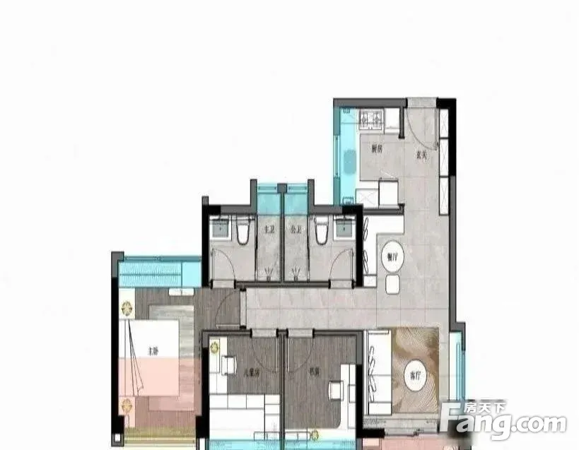 户型齐全,主打南北通透,全明格局,户型方正,动静分离,采光充足三居