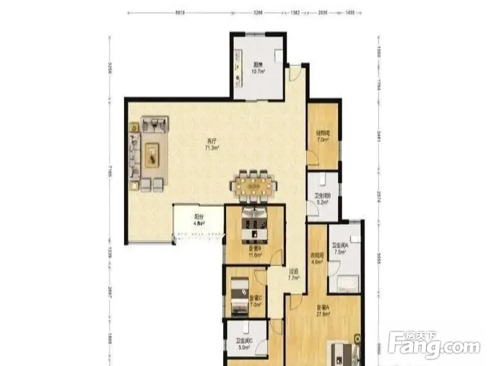 房屋户型方正,景观布局合理,设计实用,空间舒适,格局优越,采光通风良好