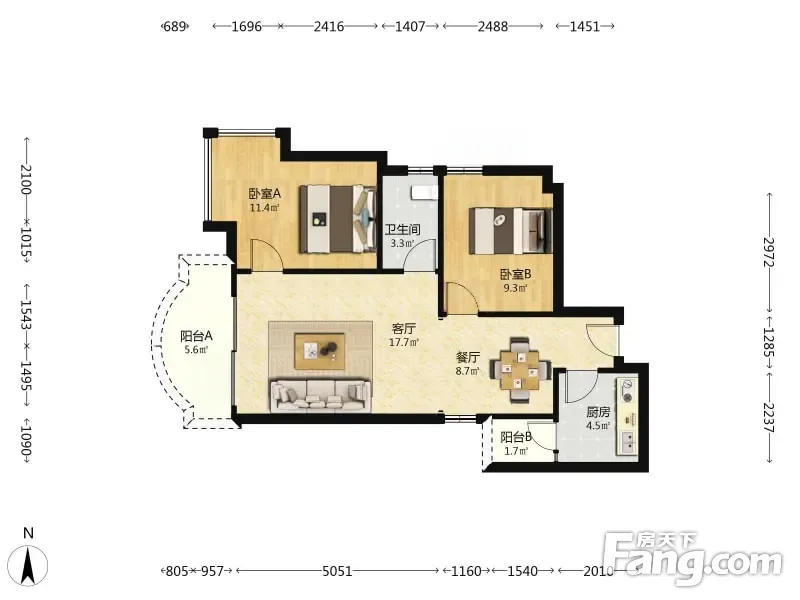 富力天朗明居 2室1厅 78.18平