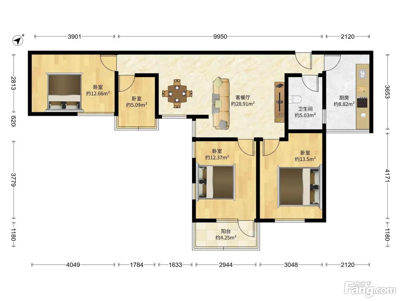 户型齐全,主打户型方正,明厨,明卫,客厅朝南,双阳台三居