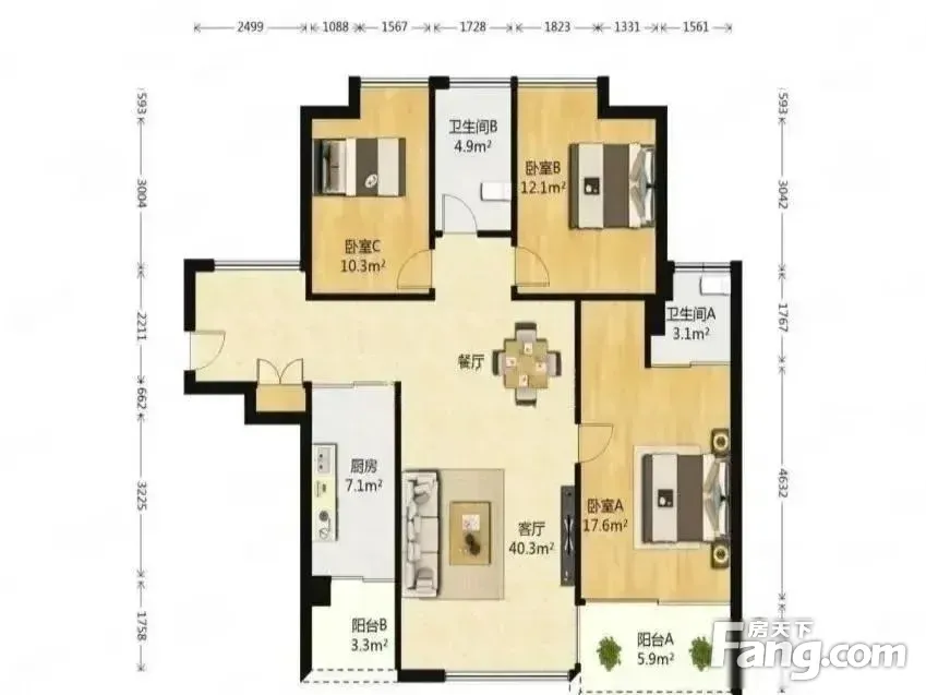 户型齐全,主打全明格局,户型方正,高附赠空间,采光充足四居