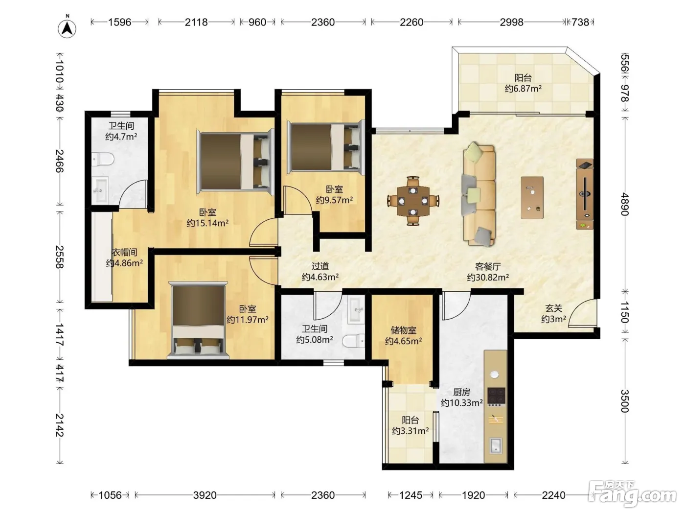 户型齐全,主打明卫,双阳台三居