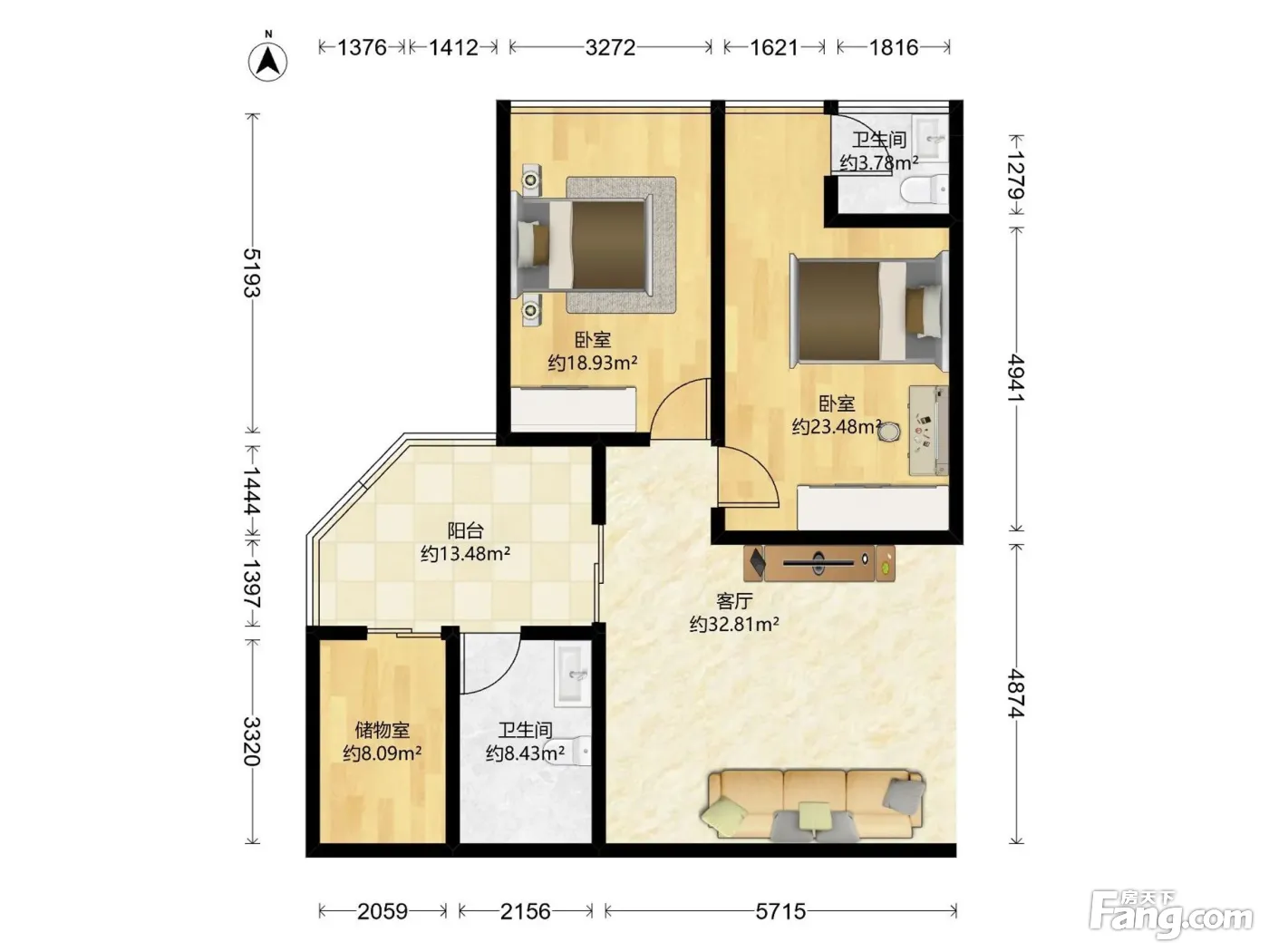 2室1厅2卫