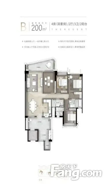 房屋拥有相对宽松的尺寸,布局通透,动静分离,设计豪华。
