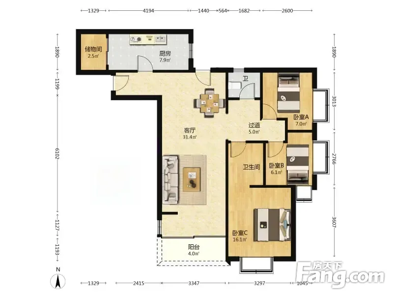 3室2厅1卫