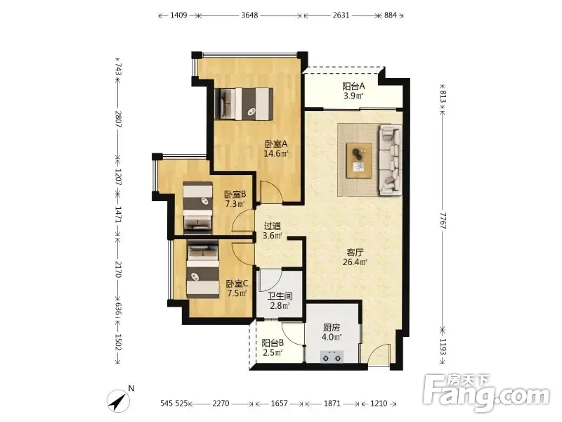 招商雍景湾北区 3室2厅 89.48平