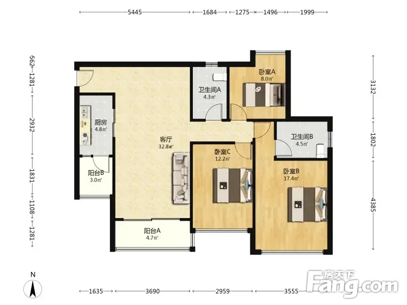 3室2厅1卫