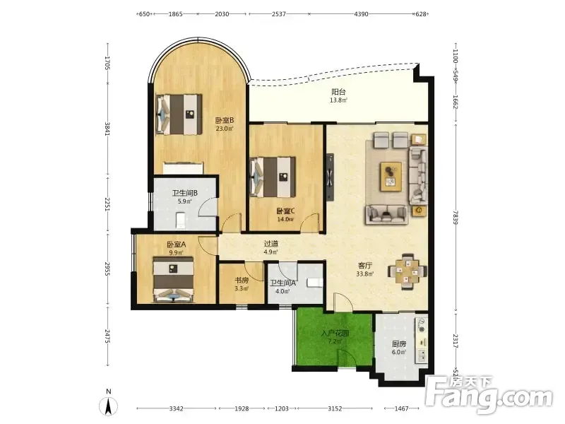 房屋拥有相对宽松的尺寸,布局通透,动静分离,设计豪华
