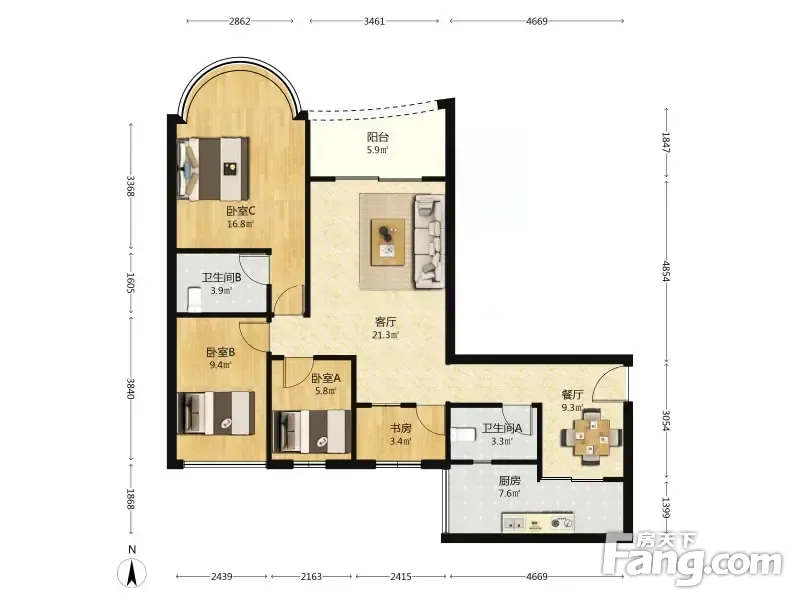 户型齐全,主打明厨,明卫,主卧朝南三居