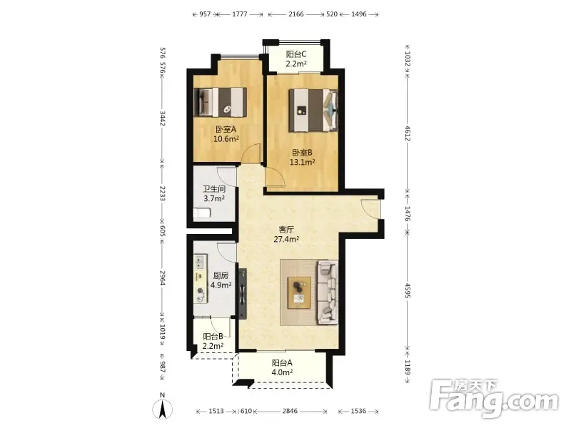 户型齐全,主打户型方正,明卫,明厨,客厅朝南,全明格局,主卧朝南二居