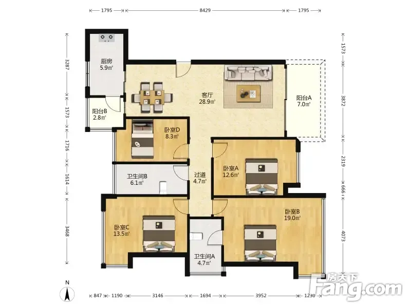 户型齐全,主打全明格局,户型方正四居