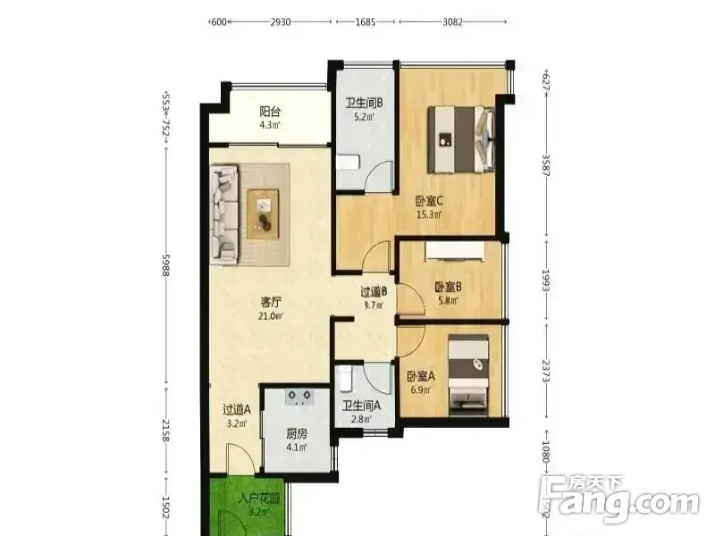 3室2厅1卫