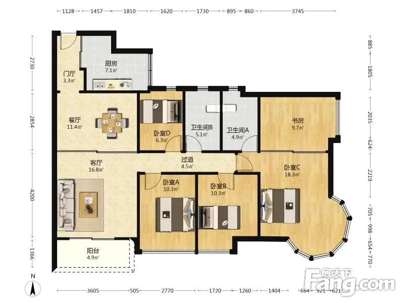 房屋拥有相对宽松的尺寸,布局通透,动静分离,设计豪华