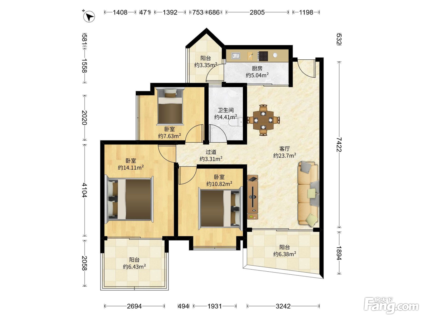 3室2厅1卫