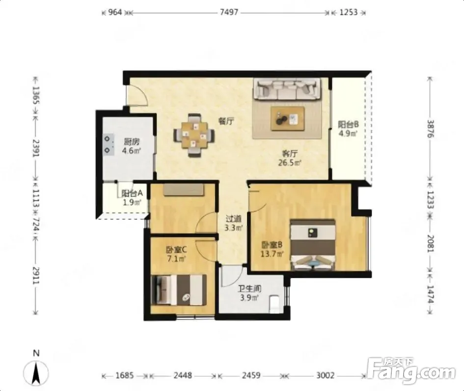 3室2厅1卫