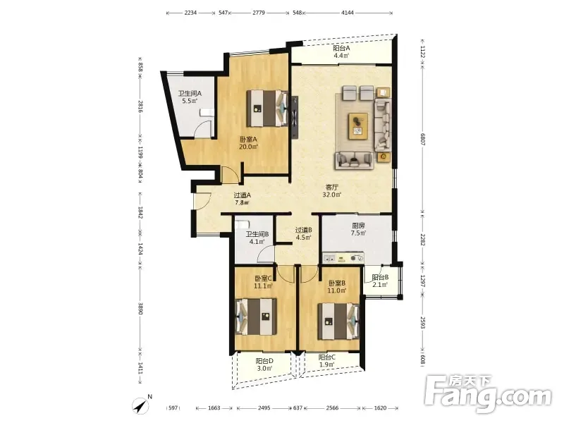 3室2厅1卫