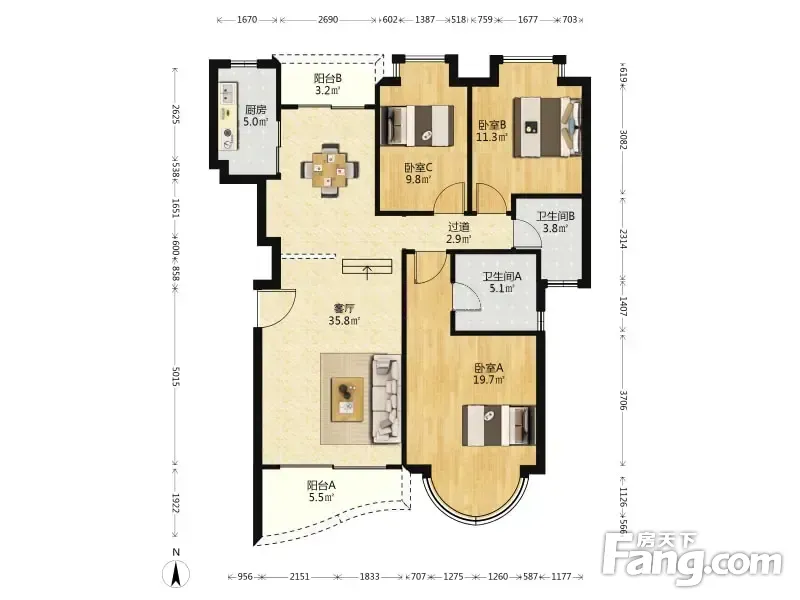 3室2厅1卫