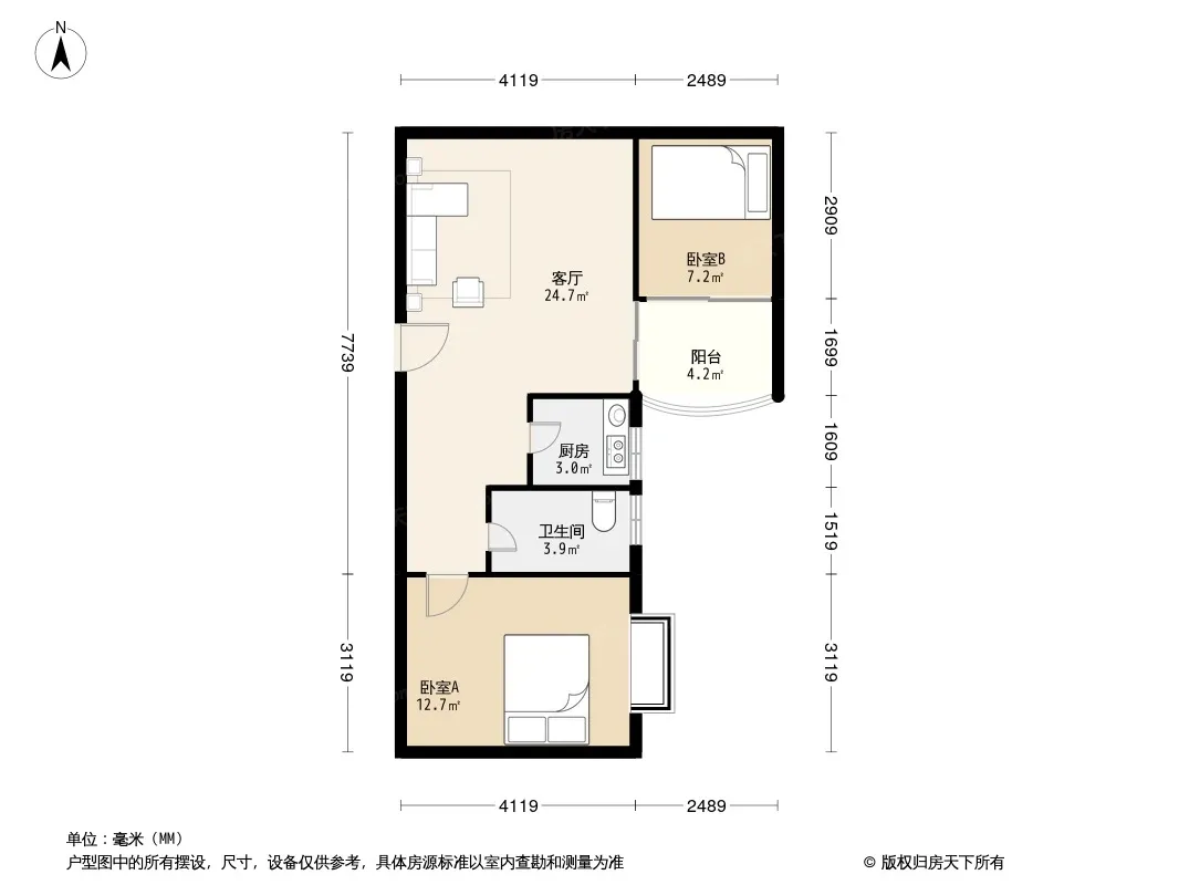 户型齐全,主打明卫,明厨,客厅朝南二居