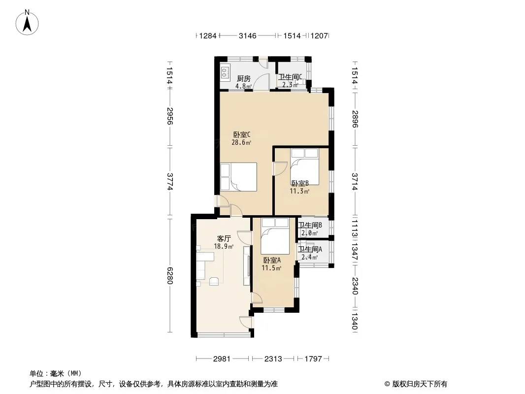 3室2厅1卫
