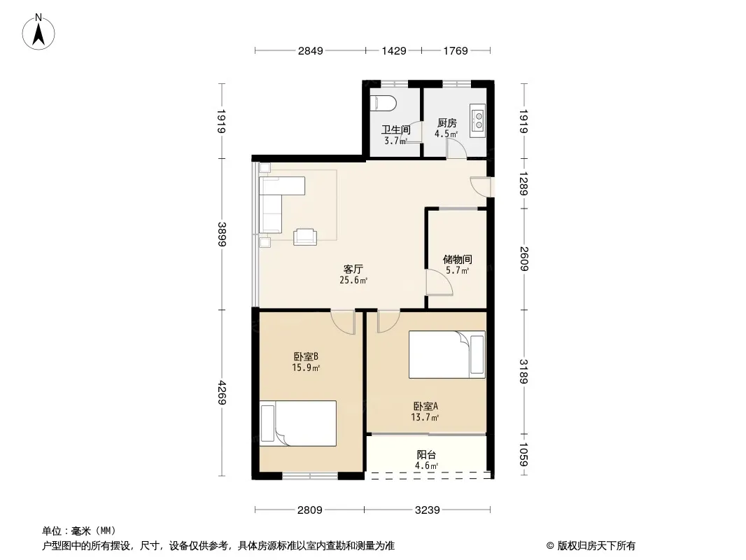 户型齐全,主打客厅朝南三居