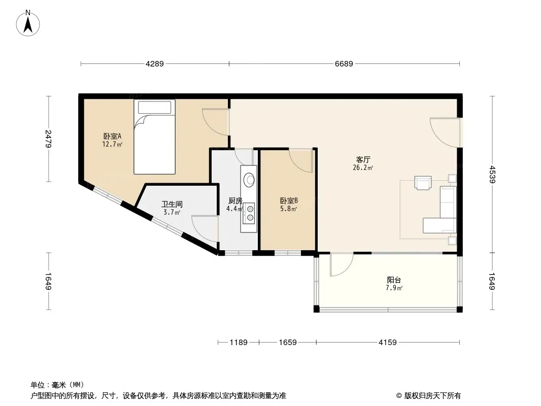 户型齐全,主打明厨,明卫,客厅朝南,全明格局二居