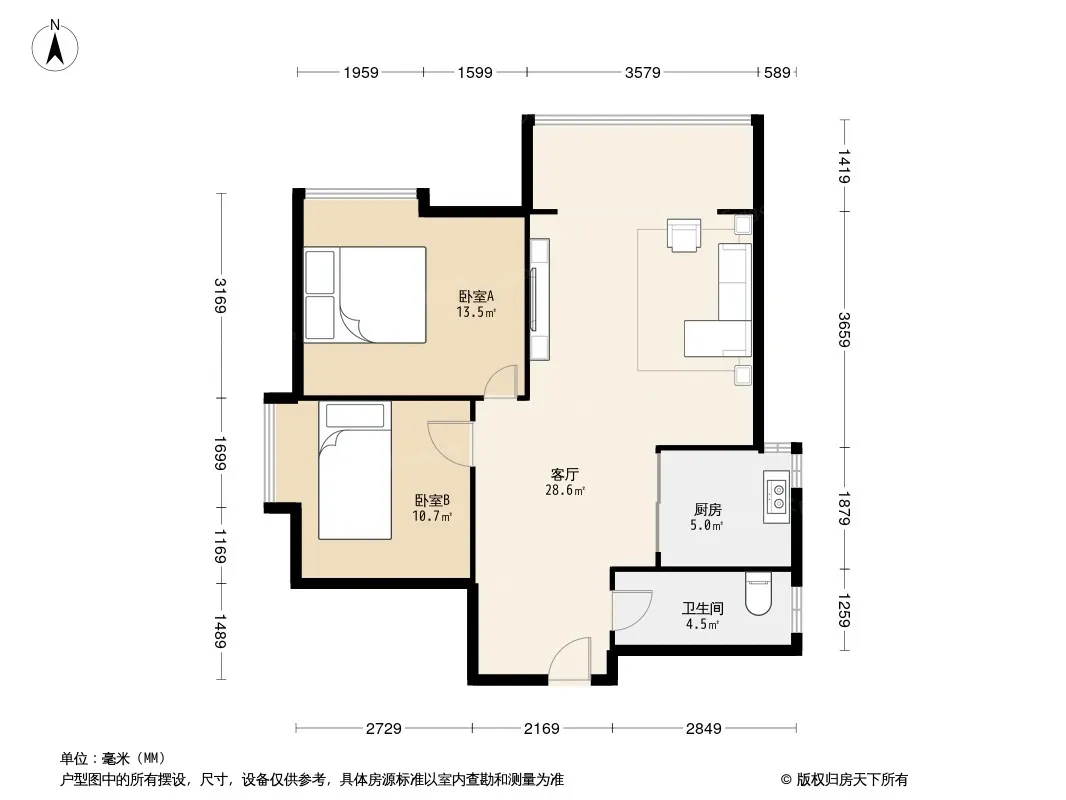 户型齐全,主打明厨,明卫,客厅朝南,全明格局二居