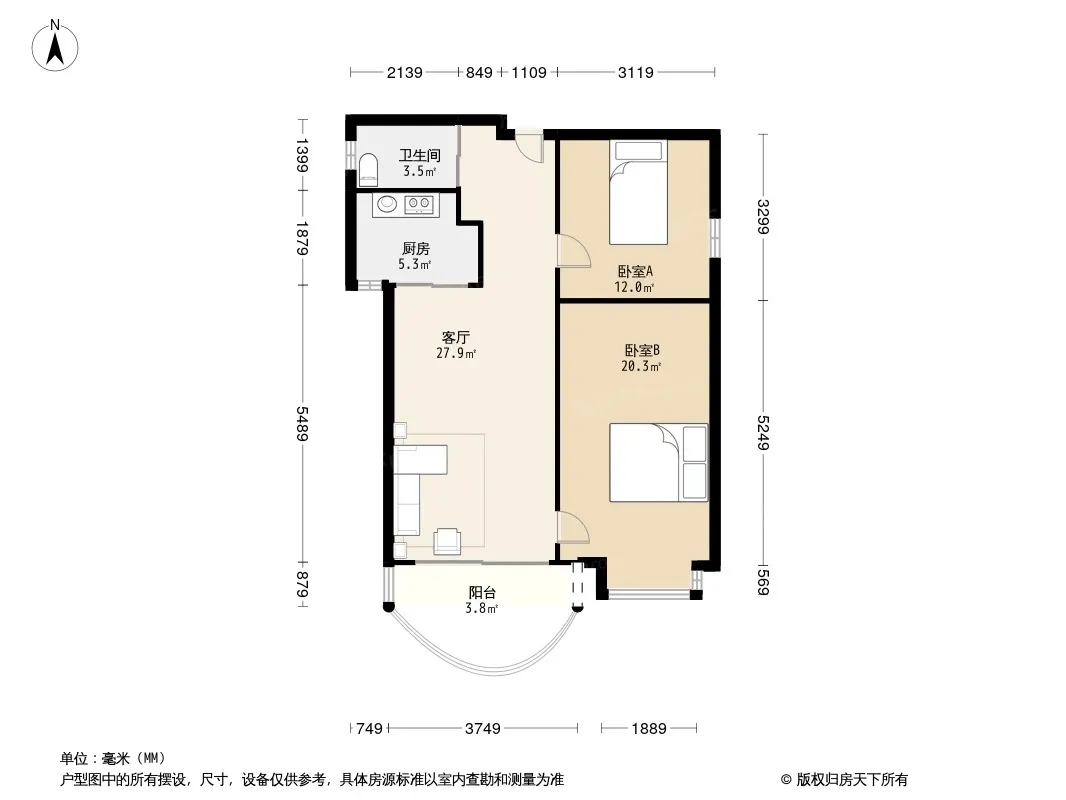 户型齐全,主打明厨,明卫,客厅朝南,全明格局二居